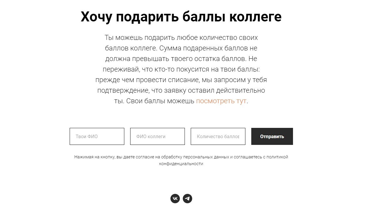 - Поделиться публикацией компании в социальных сетях на своей странице — от 30 до 100 баллов за репост. Это одно из самых простых и популярных заданий, отдельные сотрудники получали до 900 баллов за месяц.