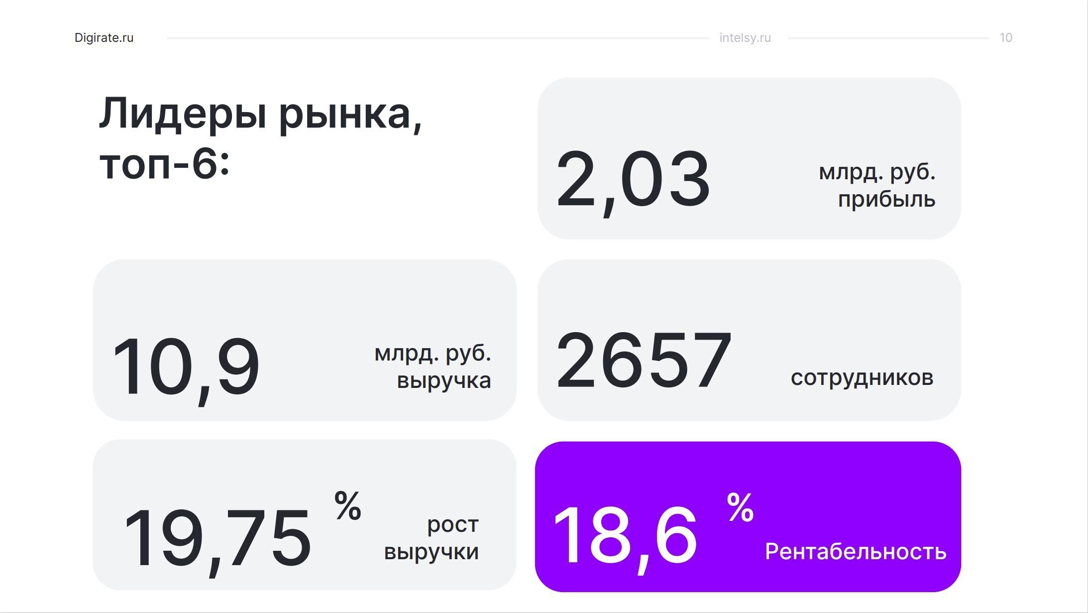 — Рентабельность у лидеров составляет 18,6%, по сравнению с 10% у остальных участников рынка.