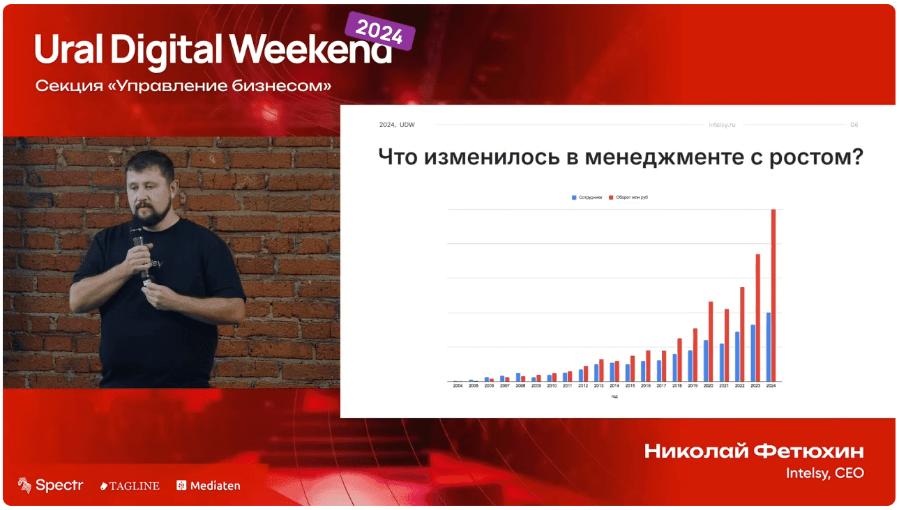 В августе побывал в прекрасной Перми и выступил на Ural Digital Weekend'24 с докладом. Эта статья — моё выступление в текстовом формате. Здесь коротко расскажу про эволюцию управления в компаниях MST (где я основатель) и Intelsy (где я CEO), про основные различия между крупными и малыми компаниями, о причинах проблем с управлением в IT-компаниях, а также о способах улучшения управления и роли управления в развитии IT-компании.