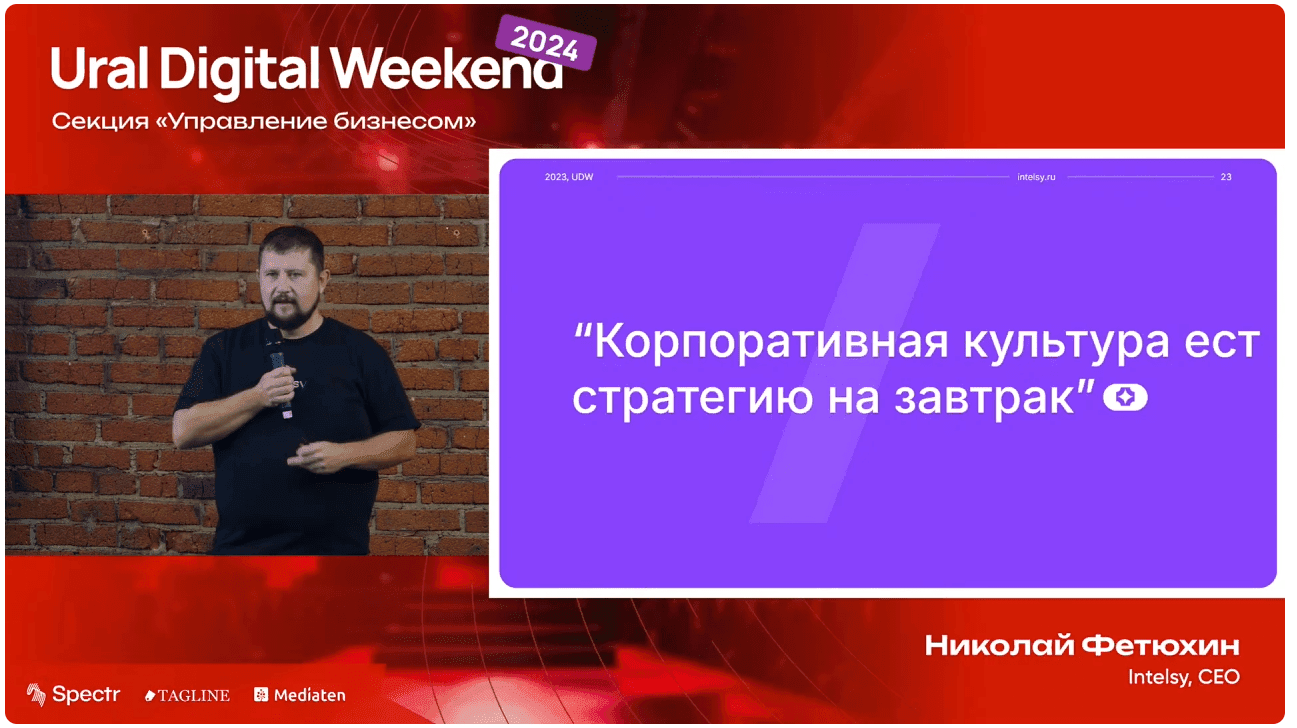 Однако сейчас, планируя стратегии на 2025-2026 годы, мы осознаем, что без прочной корпоративной культуры невозможно достигать поставленных целей. Нам необходимо формировать миссию и ценности компании. В настоящее время мы активно работаем над этим с привлечением различных консультантов.