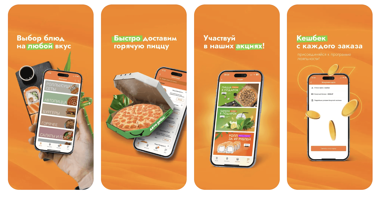 В 2022 году мы сделали Android-приложение для федеральной сети суши-баров «Автосуши» и «Автопицца». При этом iOS, дизайн и бэкенд были на стороне заказчика. Результат был быстрым – мы запустили проект уже к концу года.