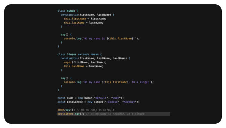 Мы создали новый класс Singer, который расширяется классом Human.