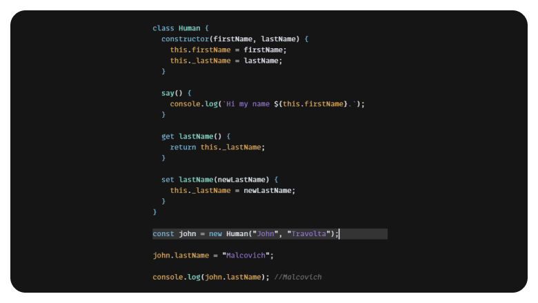 Таким образом, мы не можем получать/менять свойства, обращаясь к ним напрямую, для этого существуют геттеры и сеттеры, которые мы добавили в класс Human.