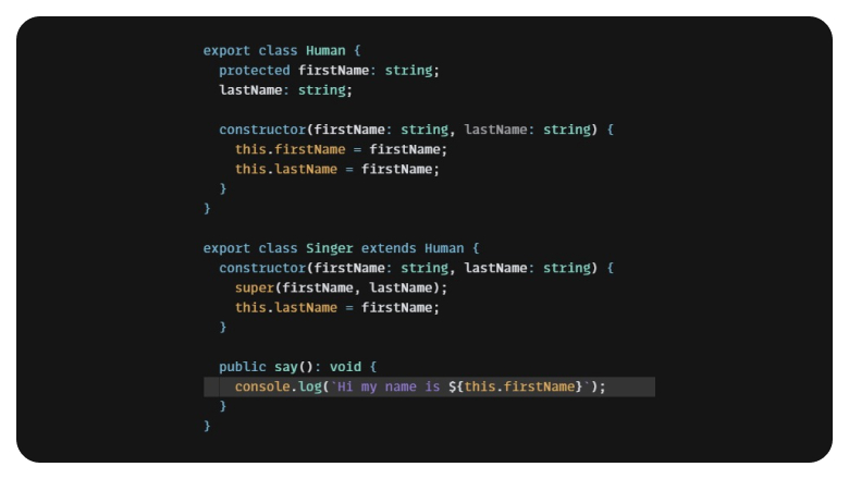 Теперь мы объявили firstName как protected, мы также не можем использовать это свойство извне класса Human, но мы можем использовать его в классах-наследниках.